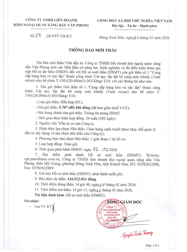 CÔNG TY TNHH LIÊN DOANH KHO NGOẠI QUAN XĂNG DẦU VÂN PHONG VANPHONG TERMINAL
