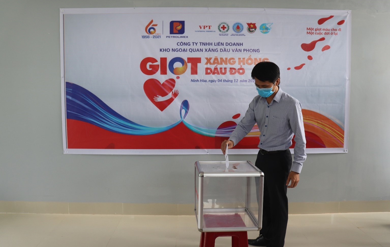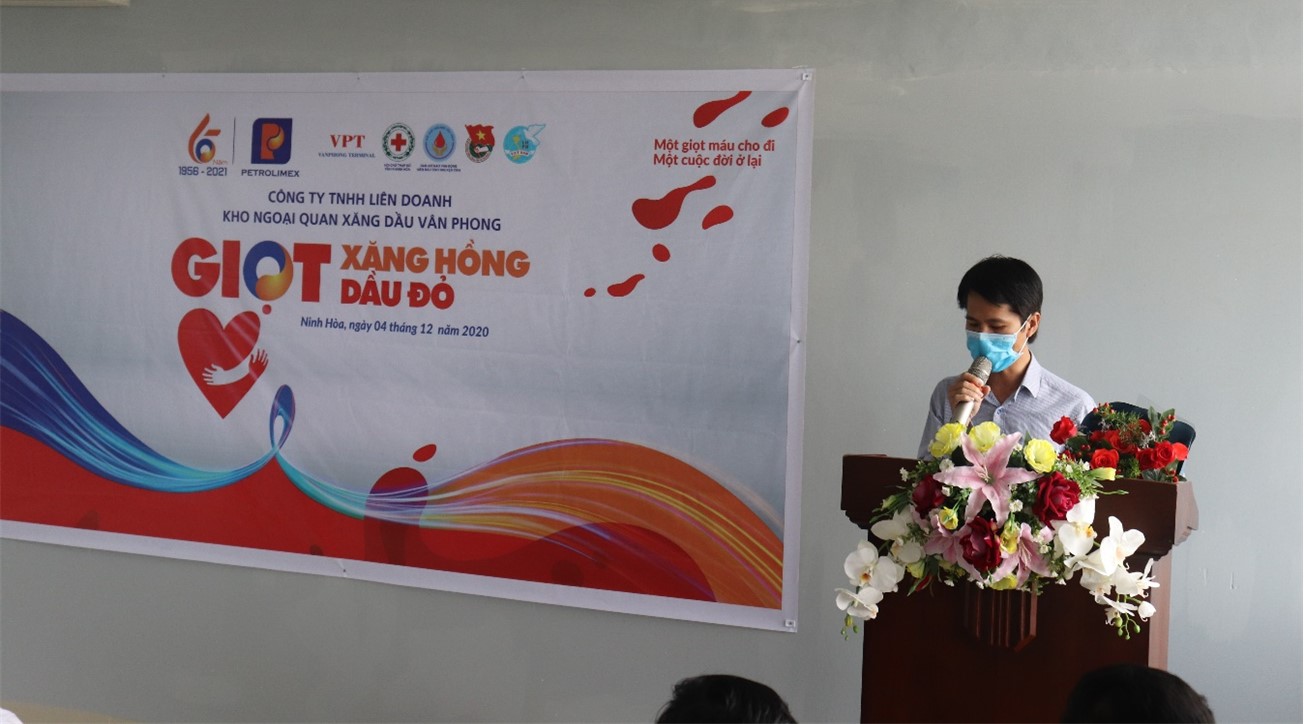 Ngày 04.12.2020, Công đoàn và Đoàn Thanh niên Công ty TNHH Liên doanh Kho Ngoại quan Xăng dầu Vân Phong (gọi tắt Công ty VPT) đã phối hợp với Hội Chữ thập đỏ tỉnh Khánh Hòa tổ chức chương trình Ngày hội hiến máu “Giọt xăng hồng – Giọt dầu đỏ” tại Công ty VPT.